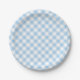Retro Gingham Baby Blue Paper Plate