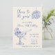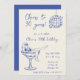 Retro hand drawn and handwritten Birthday Party invitation featuring a disco ball and a woman sitting in a cocktail glass.