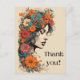 Thank You Card with boho vibes from the 1960-1970's era of flower power, picturing a girl with flowers in her hair. The back has a heading that says "Happy Birthday" that can be customised and also plenty of space left to write your own message by hand as well. Recipient and address can be filled in directly on the card or simply remove the text and fill it in by hand.