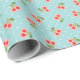 Retro girly turquoise cherry patterns monogram wrapping paper