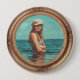 This design has golden details of the vintage photo frame and a glass dome. You can add your own photo to create your own vintage round frame photo gift. This metallic looking retro stylish photo display is gender neutral gift for antique photo frame lovers.
