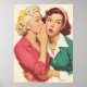 A playful vintage illustration of two stylish women sharing a juicy secret, full of color, charm, and 1950s flair. This nostalgic artwork captures the spirit of friendship, fun, and classic gossip moments—perfect for retro decor, prints, or gifts that celebrate timeless feminine style and humor.