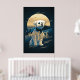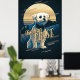 Striking retro-style poster design of a Bichon Frise with a background of mountains and large sun graphic all in a striking colour palette of gold through prussian blue. A large decorative font names the dog breed. Search ID754 to see other colour options and additional dog breeds in this style.