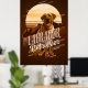Striking retro-style poster design of a Golden Labrador Retriever with a background of mountains and large sun graphic all in monochrome shades of gold through brown. A large decorative font names the dog breed. Search ID754 to see other color options and additional dog breeds in this style.