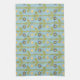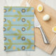 Retro Green and Blue Cute Folksy Floral Pattern Tea Towel