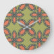 Retro Green and Orange Abstract Floral Pattern Large Clock