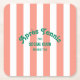 Retro Green Après Tennis Social Club Pink Stripe Square Paper Coaster