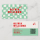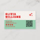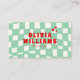 Retro Green Bold Groovy Chequered Funky QR Code Business Card