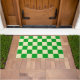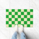 Cool fresh chequered pattern design, modern interior design decor for home, living room, nursery room, kids room. Chequered colourful curtains, rug, phone case. Chequered 70s and 60s trend design idea. Green and muted white checkers