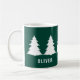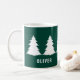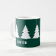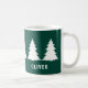 Retro `Green Christmas Modern Minimal Unique personalised family holiday mug design With modern hand drawn text and trees.