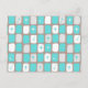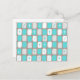 This Retro Turquoise and White Starbursts Postcard is so adorably space age you won’t be able to contain your enthusiasm. And, why would you want to? This 1960’s mid century modern inspired design features a dark heather grey background and rows of perfectly imperfect rectangles in turquoise, white, and dove grey. Kitschy white and turquoise starbursts are placed in randomly selected rectangles. This mod pattern will make you feel like you jumped in a time machine and set the dial for irresistibly vintage!