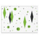 This customisable Retro Green Diamonds and Starbursts Tablecloth (large print) is a new take on a vintage style. It features kitschy, black starbursts on green polka dots, surrounding geometric, green and black diamond shapes. Customise the background colour on this mid century modern product if you're feeling daring, or leave it white if subdued is more your style. You're sure to enjoy our homage to the 1950s. Buy this today and be the coolest cat on your block.
