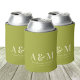 Retro Green & Ivory Monogram Wedding Can Cooler