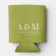 Trendy retro green and ivory wedding can cooler with bold monogram initials and modern typography. Perfect for wedding receptions, bachelorette parties, bridal showers, or engagement celebrations. Keeps drinks cool while adding a personalized touch to your special day. Ideal for guests to take home as a keepsake or to use at the beach, picnic, or backyard party after the event. A stylish and practical wedding favor with a seventies-inspired vibe.