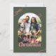 Retro Green & Pink Bow Arch Photo Christmas Holiday Card