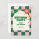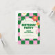 Retro Green Pink Chequered Pattern Birthday Party Invitation