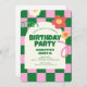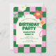 Retro Green Pink Chequered Sweet 16 Birthday Party Invitation