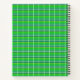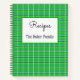 A custom recipe notebook with handwritten style script and slab letters on a retro green plaid pattern with small white and blue stripes for your favourite recipes.