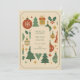 Send stylish holiday wishes with this retro green and red mid century modern holiday card. Featuring pretty and elegant geometric shapes, funky abstract starburst, vintage-inspired typography, pine trees, pine and berries, snowflakes, and a charming ornament accent, this design adds timeless style to your winter greetings.