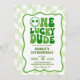 Green Wavy Patricks Day Birthday Invitation, Retro Green Wavy Kids Birthday Invitation, One Lucky Dude Kids Birthday Invitation, Retro St Patricks Birthday Invitation