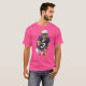 I give wanted to give this a 4 instead of a 5 because these Basic DARK T0shirts run unexpectedly SLIM or Narrow. Which is great if you do not have a potbelly, but I have a paunch. It isn't the shirt's fault that I've got a beer belly. The design and shirt itself is a quality cotton shirt. The color is more of a deep purple, but still a very pretty color. The Basic DARK T-shirts run a bit SLIMMER than the Basic Ts. The neck is a fraction narrower (or seems to be narrower) also. I'm a paunchy middle-aged woman and my neck is 12 inches (31cm) thick and the neckline fell about the same as in the photo of the man, and I had the desire to tug it a bit. So if you're a thick necked man or like loose shirts, be aware these are slimmer shirts. Once I get rid of my lockdown paunch it'll look great. The shirt washed well in cold water with no apparent bleeding. We don't have a dryer, so it hung dry. Did not shrink. Love the colors and the design. The design looks smaller on my shirt than it does on the model on-line. But still, it looks good on the shirt. The printing looks as it does on the model, just the size seems fractionally smaller. Washed garment in cold water, hung dry and design appeared unaffected.