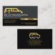 A retro grey and black columnar design is accentuated by a faux gold stripe tab. At the top of the card is a gold memorial car design that houses your business name and a slogan option to publicise your services. ; You can change the caption remarks to the slogan to suit your own service needs. Below the car design, in the black layer, lies your prestigious name, the job title and the contact details in the opposite corner. Lettering here are in faux gold.