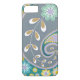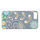 Retro grey paisley motif custom iPhone 6 design featuring a paisley motif in grey, lavender purple with mint green flowers on teal background. This retro/vintage style feminine design is a great gift for women.