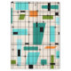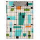 This Retro Grid and Starbursts Clipboard is where vintage style meets modern day. It features a cream coloured background with kitschy, off kilter squares and rectangles in teal, turquoise, This light blue, orange, and avocado green. The whimsical blocks of colour are overlayed are worked into some of the grid intersections. There are also black rectangles with black vertical and horizontal lines forming a grid pattern. Black starburst designs and squares placed sporadically throughout this mid century modern tapestry of colour. Grab your go-go boots and bell-bottoms and enjoy this throwback to the 1960s.
