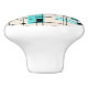 This Retro Grid and Starbursts Custom Ceramic Knob is where vintage style meets modern day. It features a cream coloured background with kitschy, off kilter squares and rectangles in teal, turquoise, This light blue, orange, and avocado green. The whimsical blocks of colour are overlayed are worked into some of the grid intersections. There are also black rectangles with black vertical and horizontal lines forming a grid pattern. Black starburst designs and squares placed sporadically throughout this mid century modern tapestry of colour. Grab your go-go boots and bell-bottoms and enjoy this throwback to the 1960s.