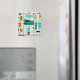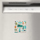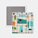 This Retro Grid and Starbursts Magnet is where vintage style meets modern day. It features a cream coloured background with kitschy, off kilter squares and rectangles in teal, turquoise, This light blue, orange, and avocado green. The whimsical blocks of colour are overlayed are worked into some of the grid intersections. There are also black rectangles with black vertical and horizontal lines forming a grid pattern. Black starburst designs and squares placed sporadically throughout this mid century modern tapestry of colour. Grab your go-go boots and bell-bottoms and enjoy this throwback to the 1960s.