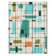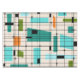 This Retro Grid and Starbursts Tablecloth is where vintage style meets modern day. It features a cream coloured background with kitschy, off kilter squares and rectangles in teal, turquoise, This light blue, orange, and avocado green. The whimsical blocks of colour are overlayed are worked into some of the grid intersections. There are also black rectangles with black vertical and horizontal lines forming a grid pattern. Black starburst designs and squares placed sporadically throughout this mid century modern tapestry of colour. Grab your go-go boots and bell-bottoms and enjoy this throwback to the 1960s.