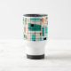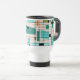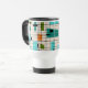 This Retro Grid and Starbursts Travel Mug is where vintage style meets modern day. It features a cream coloured background with kitschy, off kilter squares and rectangles in teal, turquoise, This light blue, orange, and avocado green. The whimsical blocks of colour are overlayed are worked into some of the grid intersections. There are also black rectangles with black vertical and horizontal lines forming a grid pattern. Black starburst designs and squares placed sporadically throughout this mid century modern tapestry of colour. Grab your go-go boots and bell-bottoms and enjoy this throwback to the 1960s.
