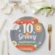 Cute girly retro 10 is groovy birthday invitations. Popular retro rainbow, stars, flowers, and 60s style font. Available as a digital download printable.