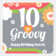 Cute girly retro 10 is groovy birthday invitations. Popular retro rainbow, stars, flowers, and 60s style font. Available as a digital download printable.