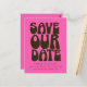 Retro Groovy 70s Bold Hot Pink Green Save The Date Postcard
