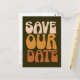 Retro Groovy 70s Brown Save The Date Postcard