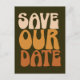 Retro Groovy 70s Tan and Brown Save the Date Postcard
