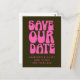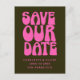 Retro Groovy 70s Hot Pink and Green Save The Date Postcard