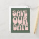 Retro Groovy 70s Light Pink and Green Save the Date Postcard