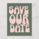 Retro Groovy 70s Pink and Green Save The Date Postcard