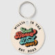 Retro Groovy Best Bonus Dad Ever Photo Name Key Ring