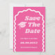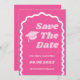 Retro Groovy Bold Pink Wavy Grad Cap Graduation Save The Date