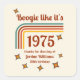 Get ready to groove with this retro-inspired 50th birthday favour tag! The front features a wavy, colourful line in a nostalgic 70s palette with the bold phrase "Let's boogie like it's" on top and the year of birth tucked beneath. All text is fully customisable — from the name and party details to colours and fonts — making it perfect for a totally personalised celebration.