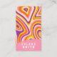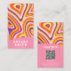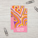 A Vintage retro Psychedelic colourful pink liquid business card. That features a handmade groovy pattern boho abstract wavy shapes lines .In elegant chic orange and pink and beige and purple . Modern yet it has nostalgic seventies vibes and vibrant warm colours and groovy fonts. With customisable name and profession and QR code.