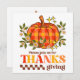 Retro groovy style colourful Thanksgiving Dinner invitation card. Elegant retro font typography with cute daisy flowers, stars and a chequered pumpkin. The card includes the dinner details at the back which can be personalised.