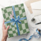 retro groovy cute sage green wavy checkered wrapping paper