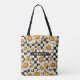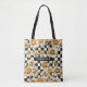 Retro Groovy Daisy Chequerboard Personalised Name Tote Bag