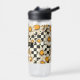 Retro Groovy Daisy Chequerboard Personalised Name Water Bottle