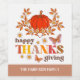 Elegant retro font typography "Happy Thanksgiving", with cute daisy flowers, butterflies, and a pumpkin. The name can be customised.