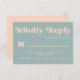 Abstract shapes retro groovy vintage 70s style unique wedding RSVP card with meal choice and "kindly reply" bold typography in a soft pastel trendy modern dusty blue and blush pink vintage color palette. +++++++ Please note that all the colors are changeable. ++++++++++++ Matching invitation and stationery are available in the collection.